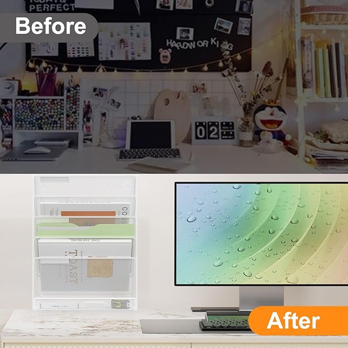 Kuntine.B Wall File Organizer Office Hanging Magazine Holder Wall File Organizer for Office Home (White, 6 Tier)