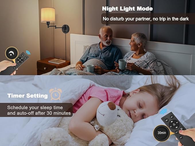 - ใ๐๐ข๐ฆ๐๐ซ ๐ ๐ฎ๐ง๐๐ญ๐ข๐จ๐ง & ๐๐ข๐ ๐ก๐ญ ๐๐ข๐ ๐ก๐ญ ๐๐จ๐๐ใWall mounted lamp has timing function, it will automatically turn off after 30 minutes. Timer setting make you and your baby feel safe and fall in sleep easily, never forget to turn off the lights. Also it has night light mode, create soft ligth, no disturb your partner, no longer trip in the dark.