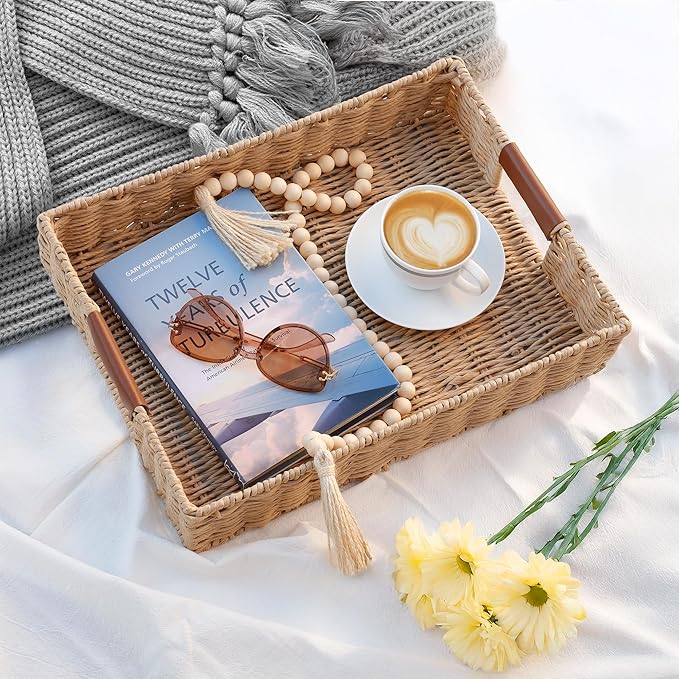 - ✔ NATURAL ELEGANCE & PREMIUM DESIGN – Handwoven from high-quality rattan, these decorative trays add a refined boho charm to any space, perfect for home decor and organization.