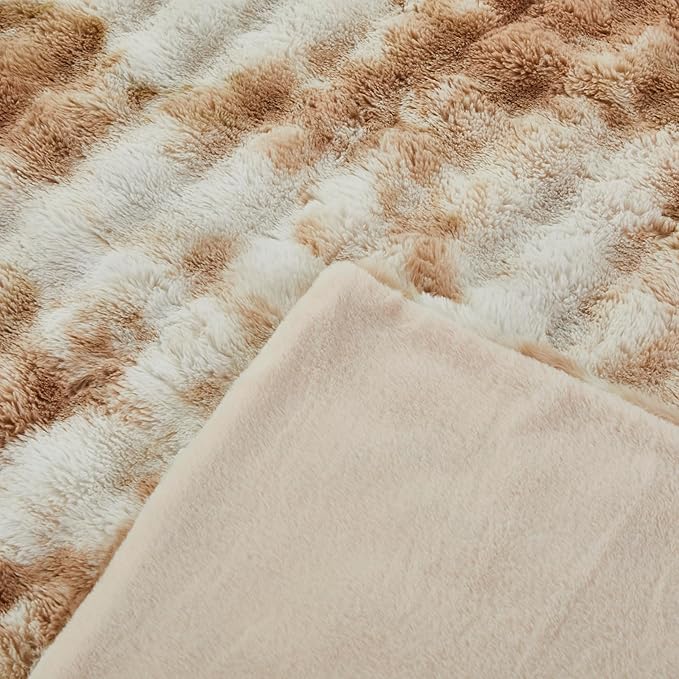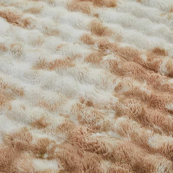 Faux Fur Throw Blanket for Couch Cozy Fuzzy Soft Plush Thick Fluffy Fleece Bubble Blanket for Sofa Bedroom Living Room, 63x79 Inches Caramel