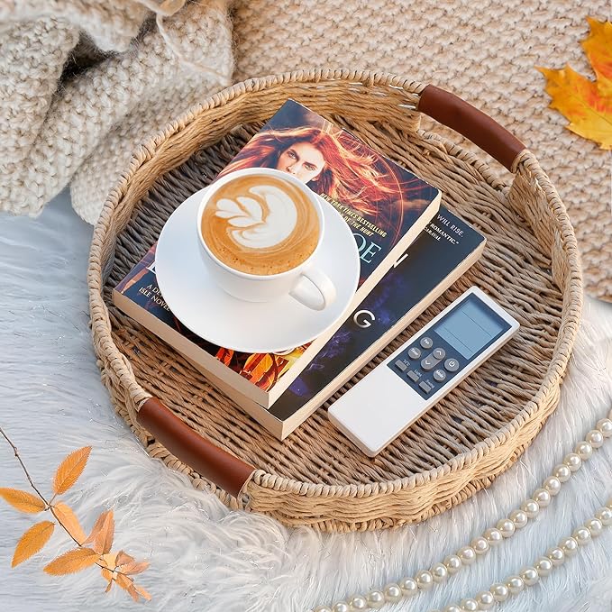 - ✔ NATURAL ELEGANCE & PREMIUM DESIGN – Handwoven from high-quality rattan, these decorative trays add a refined boho charm to any space, perfect for home decor and organization.