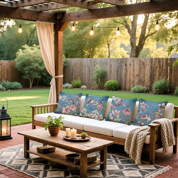 Cirzone Waterproof Outdoor Pillow Covers 18x18 Inch Set of 4 Summer Spring Floral Throw Pillow Covers Spring Outdoor Decor for Patio Furniture Garden Sofa