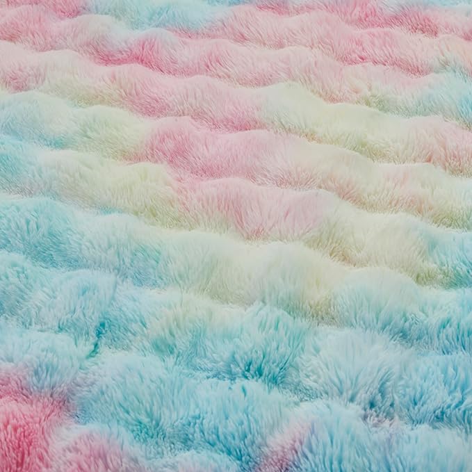 Faux Fur Throw Blanket for Couch Cozy Fuzzy Soft Plush Thick Fluffy Fleece Bubble Blanket for Sofa Bedroom Living Room, 63x79 Inches Rainbow