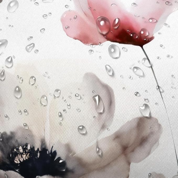 Boho Floral Shower Curtain, Cream Tan Beige Red Grey White Flower Farmhouse Fabric Shower Curtains Set for Bathroom Decorative with Hooks 72 X 72 inch Spring Bath Decor