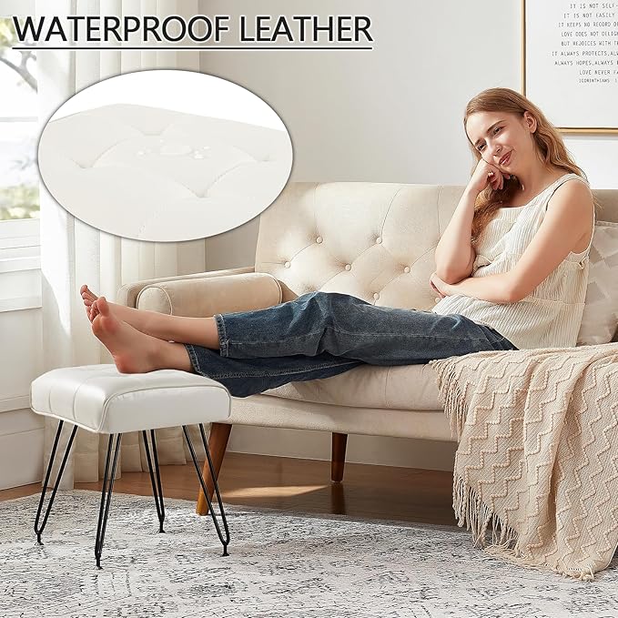 - 【LEATHER VANITY STOOL】: Rectangular ottoman foot stool with sponge cushion padded seat and metal legs provide comfort and sturdy support, which give you an excellent use. The PU material is easy to maintain, simply wipe gently with a soft wet towel to clean the stains.