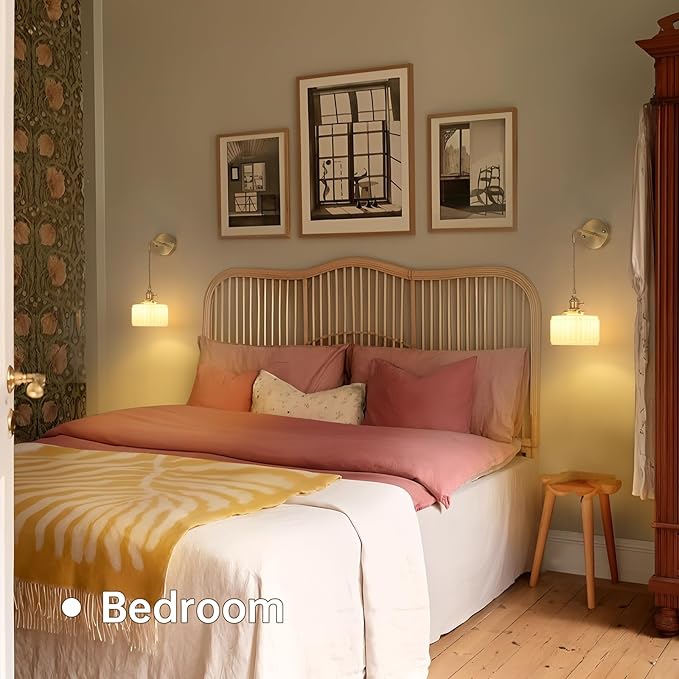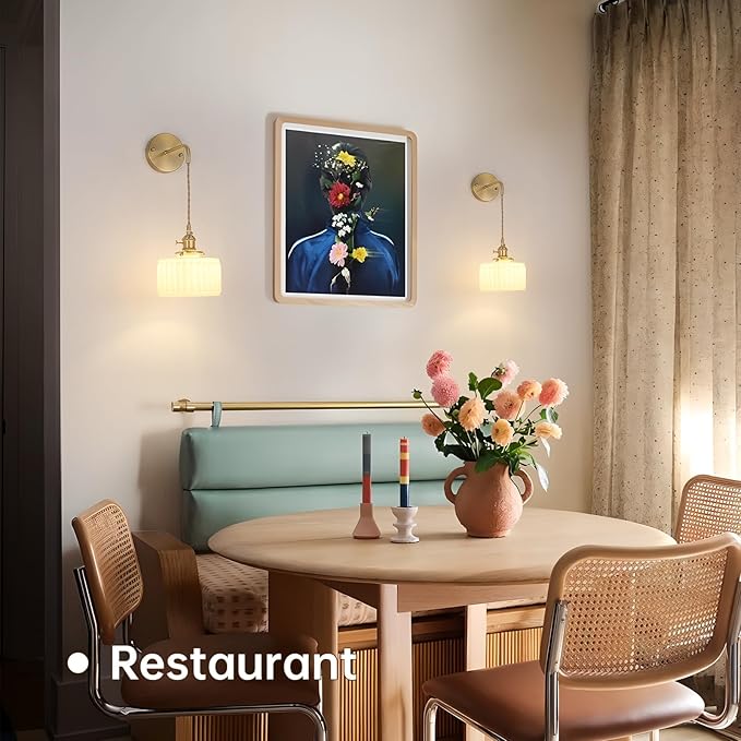 - ⭐【Adjustable Cord】 The length of the cord can be adjusted according to needs to meet the lighting needs of different spaces and individuals, enhancing the flexibility and adaptability. The knob switch on the sconce is cleverly designed to retain the characteristics of the retro style while providing the convenience of modern life. The wires are wrapped in a rubber coating and covered with fabric to ensure safety and reliability.