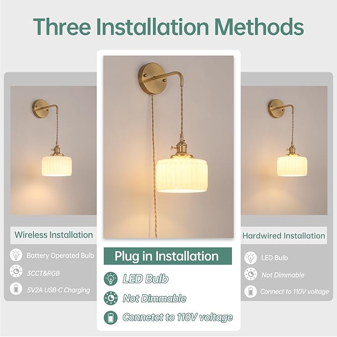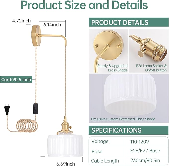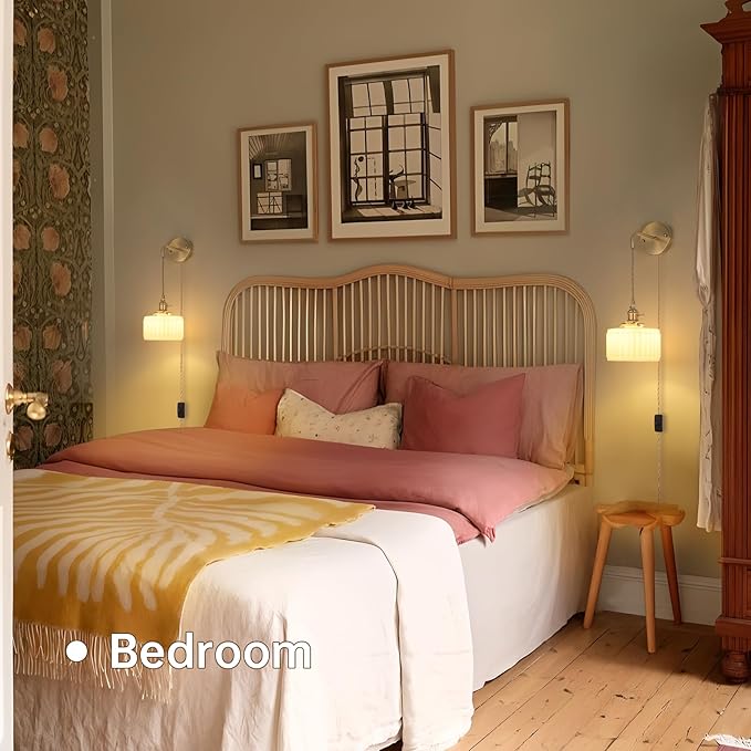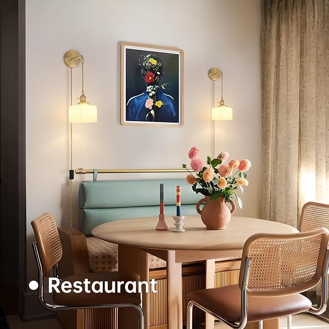 - ⭐【Adjustable Cord】 The length of the cord can be adjusted according to needs to meet the lighting needs of different spaces and individuals, enhancing the flexibility and adaptability. The knob switch on the sconce is cleverly designed to retain the characteristics of the retro style while providing the convenience of modern life. The wires are wrapped in a rubber coating and covered with fabric to ensure safety and reliability.