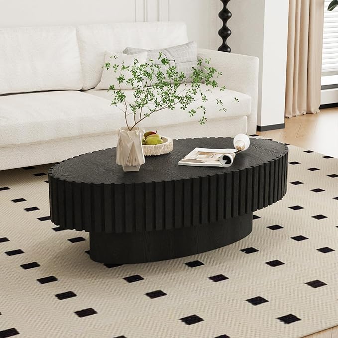 Modern Wood Coffee Table - Handcraft Drum Coffee Tables with Sturdy Base, Easy Assembly, Contemporary Style Small Coffee Table Tea Table for Living Room, Bedroom, Office (Black Oval)