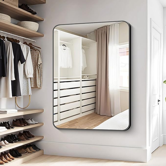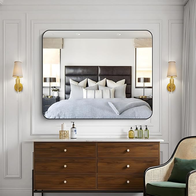 - Multi-Sizing for Every Option:KOCUUY 40"x48" black framed mirror with rounded corners complements large areas, while sizes ranging from 20"x20" to 72"x36" adapt to compact or spacious settings. Elevate any room with its understated elegance and artistic flair.