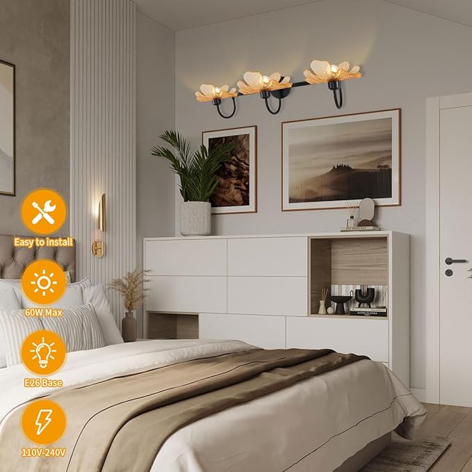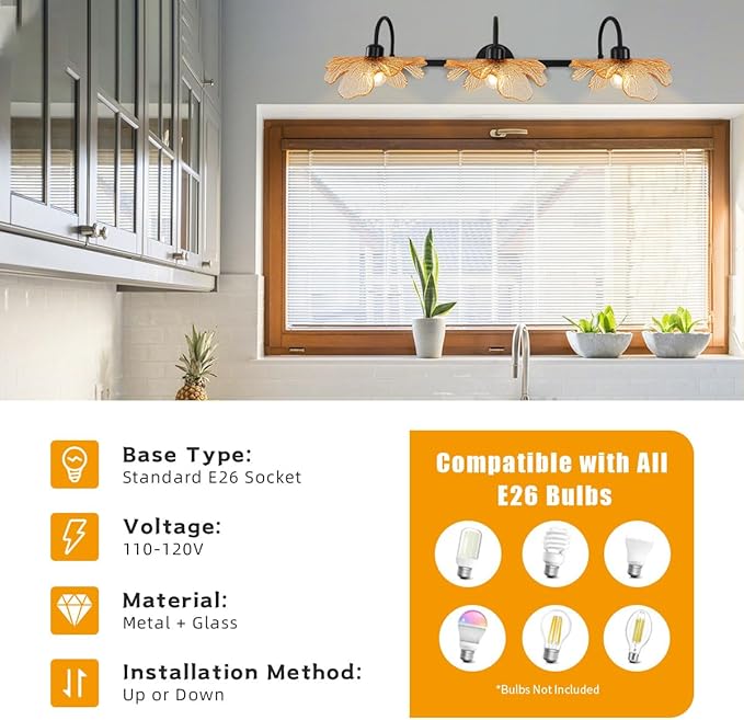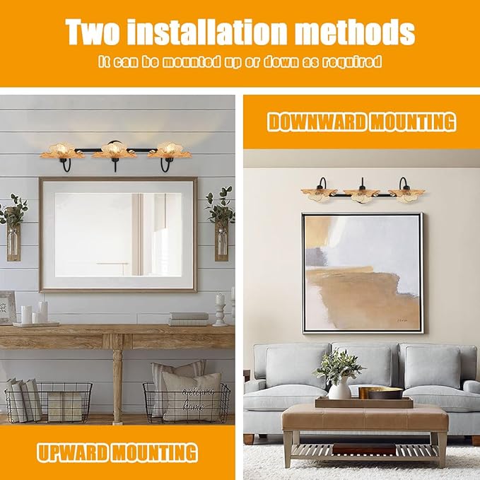 - Easy to Install-Glass bathroom lighting:Hardwired and pre-install, includes all mounting hardware, all you need to do is hardwired and screwed the glass shades and bulbs.
