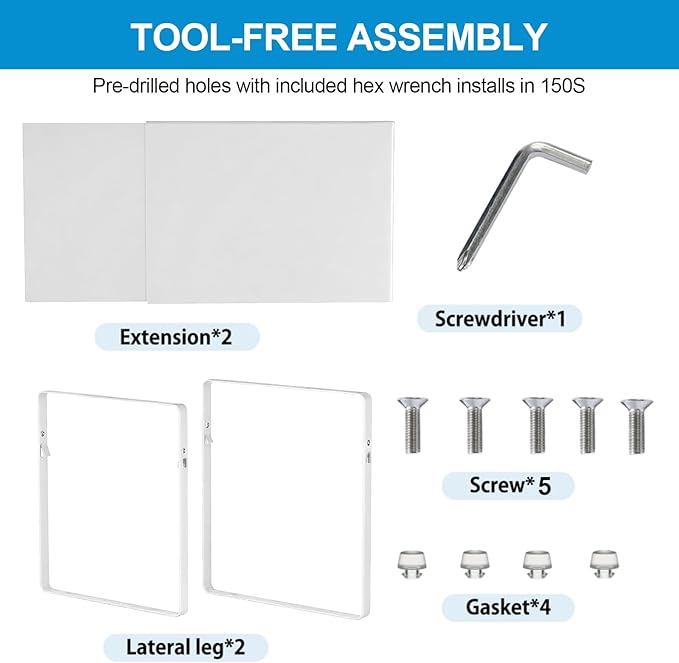 - Tool-Free Assembly:Pre-drilled holes with included hex wrench, installs in 150 seconds (vs. 10min industry average)