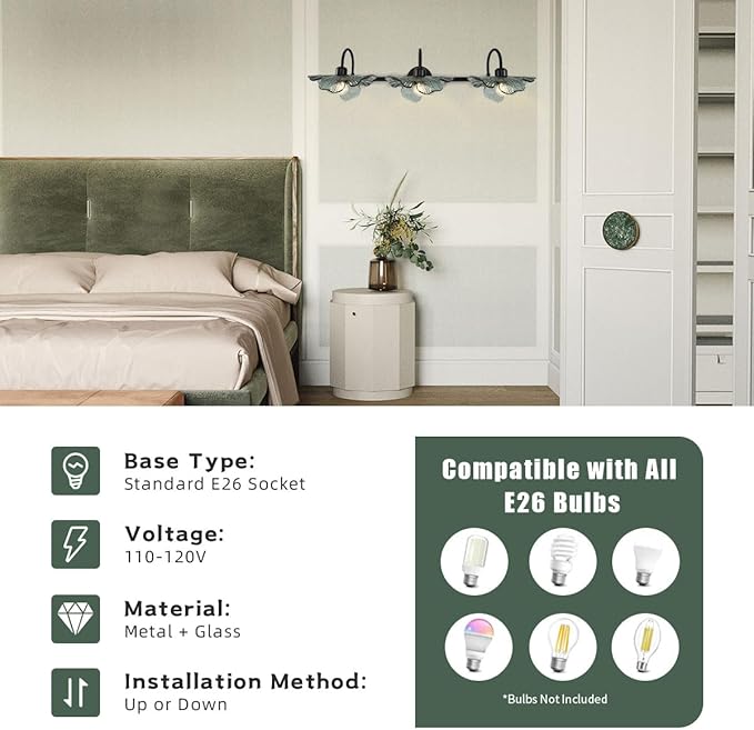 - Easy to Install-Glass bathroom lighting:Hardwired and pre-install, includes all mounting hardware, all you need to do is hardwired and screwed the glass shades and bulbs.