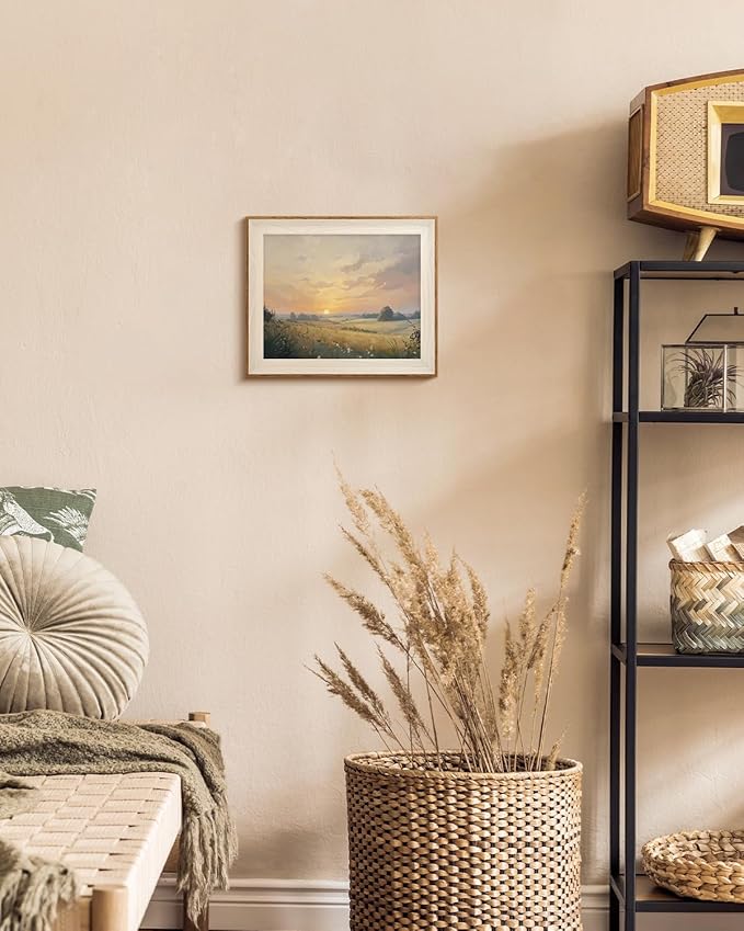 InSimSea Framed Wall Art Landscape Fall Print Shelf Decor Classic Vintage Meadow Wildflower Autumn Wall Picture Canvas Farmhouse Artwork for Bathroom Bedroom Decor Aesthetic 12L x 10W