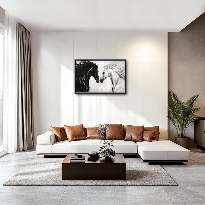 Horse Wall Art Western Horse Pictures Wall Decor Large Black and White Canvas Prints Framed Artwork Paintings Home Office Decorations for Living Room Bedroom Dinning Room Corridor 36"x24"