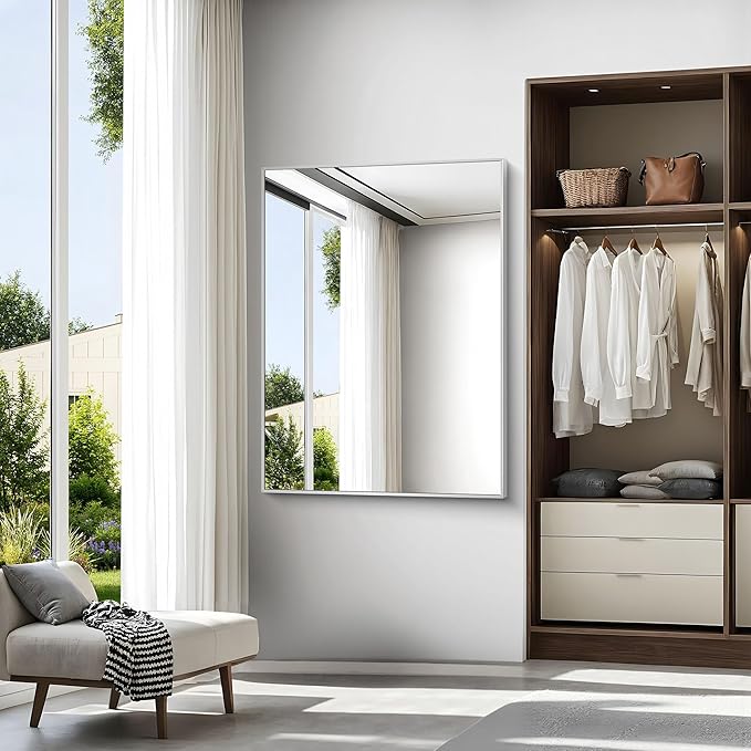 - HIGH SAFETY : The package for this wall mounted bathroom mirror is well,Sturdy and reliable,equipped with explosion-proof film and explosion-proof glass,even if impacted by external forces,silver frame mirror glass will not break and splash,ensuring higher safety and protection.