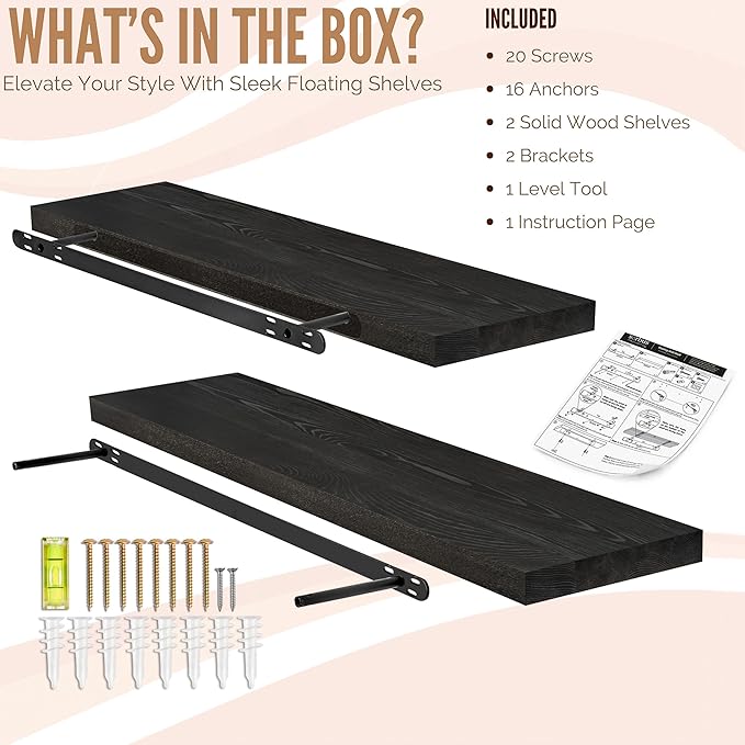 - Design & Dimensions: Crafted from solid pine wood. Wall shelves measure 35” x 9” x 1.2”. Included mounting hardware and hidden brackets provide sturdy, gap-free mounting on various wall types.