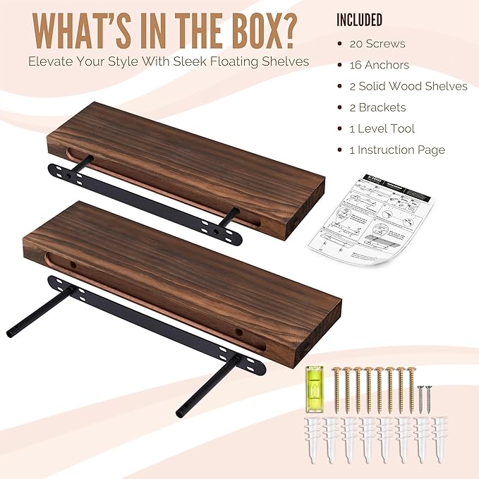- Premium 100% Solid Wood Built to Last: Made from high-quality, genuine wood! Wall mounted shelves are designed to withstand the test of time while supporting over 20 lbs per shelf. Upgrade your space with these handcrafted solid pine floating shelves, featuring natural wood grain and knots