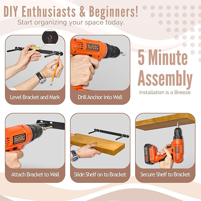 - Extremely Sturdy & Secure Mounting Hardware: This heavy duty shelving unit includes durable stainless steel mounting brackets that ensure stability. Use as bathroom shelves, shelves for bedroom wall, shelves for room wall, bathroom wall shelf, floating book shelves for wall, bathroom shelves over toilet, small floating shelf, wall shelf for bedroom, and more.