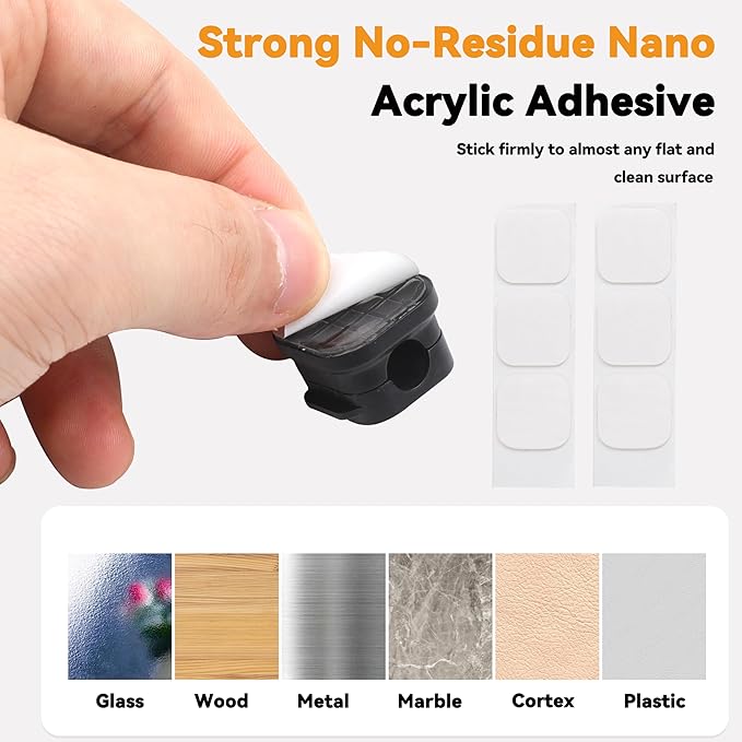 - EASY INSTALLATION: Strong adhesive backing allows for quick setup - simply peel, stick, and insert cables into the designated slots