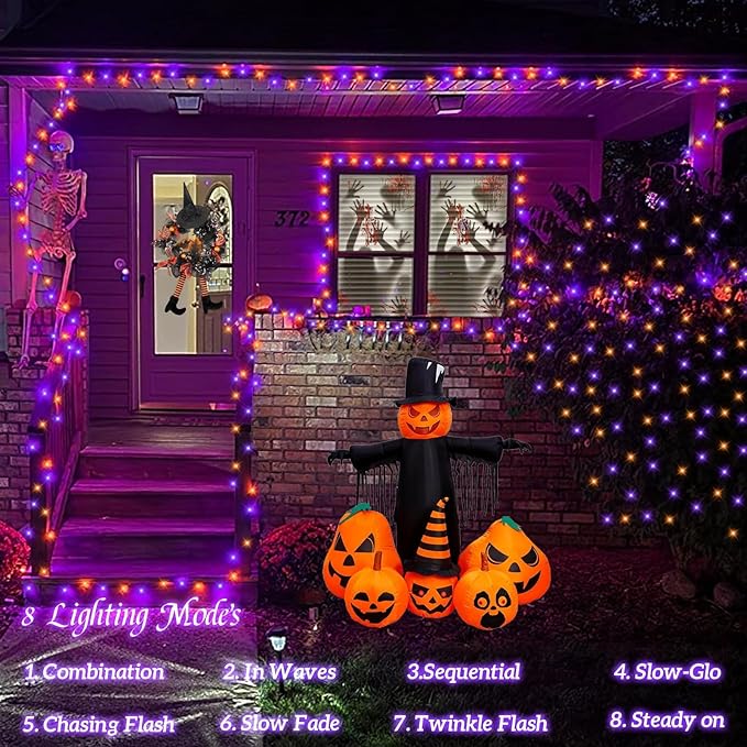 YEGUO 66ft 200 LED Orange and Purple Halloween Lights Outdoor Waterproof, Green Wire Christmas String Lights Indoor, 8 Modes Twinkle Tree Lights Plug in with Timer Memory