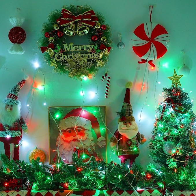 - 8 Lighting Modes: Christmas lights has 8 lighting modes (combination, in wave, sequential, slo-glo, chase/flash, slow fade, twinkle/flash, steady on). Different lighting effects are controlled by the adapter button. Change the mode as needed to attract and surprise your neighbors! Christmas lights will be a eye-catching decoration at your party.