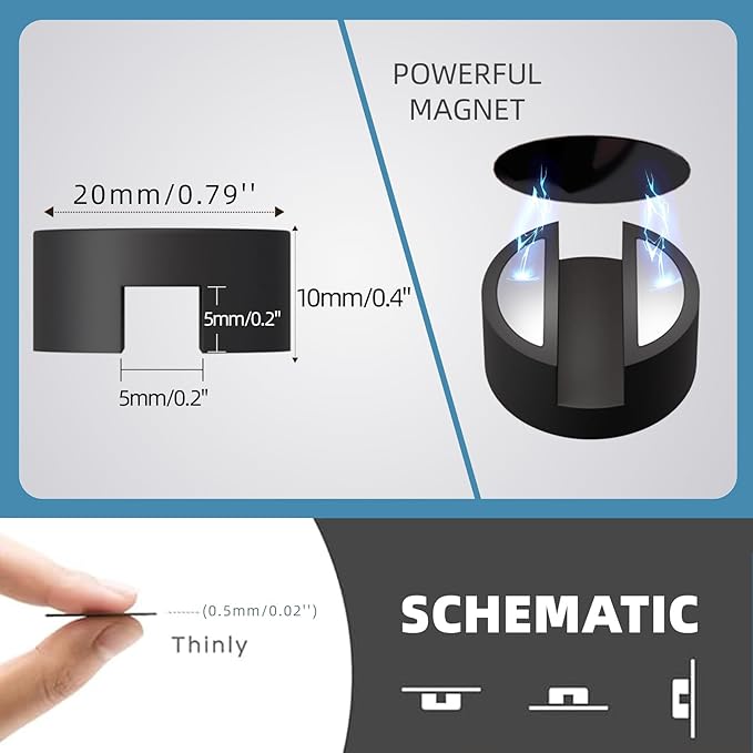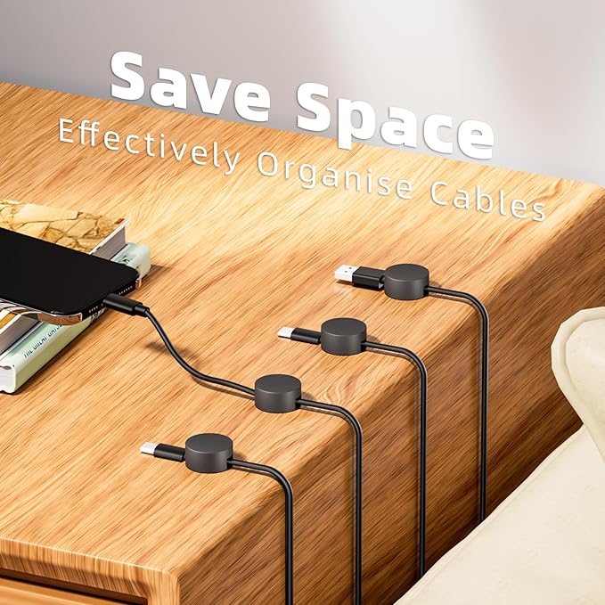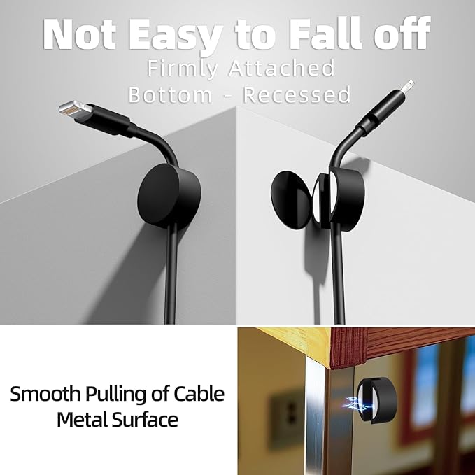 - 【Magnetic Adsorption Design】Fed up with cables falling off flimsy clips? Our magnetic cable Straps firmly attaches to metal surfaces. The U - shaped slot locks cables up to 0.2'' (5mm) in diameter stably. Say goodbye to tangled cords on desks, nightstands, or in cars—keep Type - C, Lightning, and earphone wires neatly positioned
