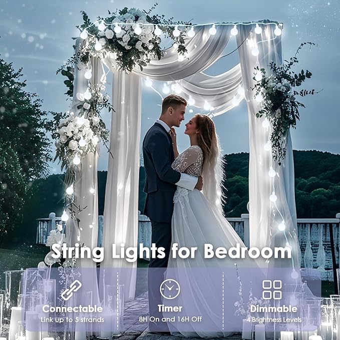 - Remote Control & Timer & Memory: These indoor string lights come with a wireless remote, You can easily turn the lights on and off, select from 8 light modes, adjust 4 brightness levels, and set a timer to keep the lights on for 6 hours and off for 18 hours. The globe lights for bedroom will memorize your last setting with the built-in memory chip.