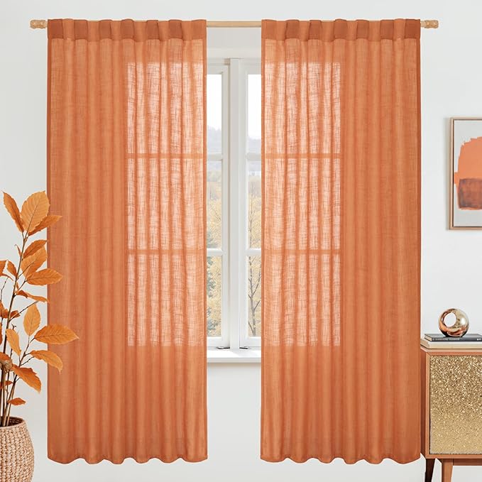 LAMIT Burnt Orange 72 inch Linen Curtains for Living Room 2 Panels, Linen Textured Light Filtering Semi Sheer Back Tab and Rod Pocket Curtain Panels for Bedroom/Farmhouse, 52 x 72 Inch