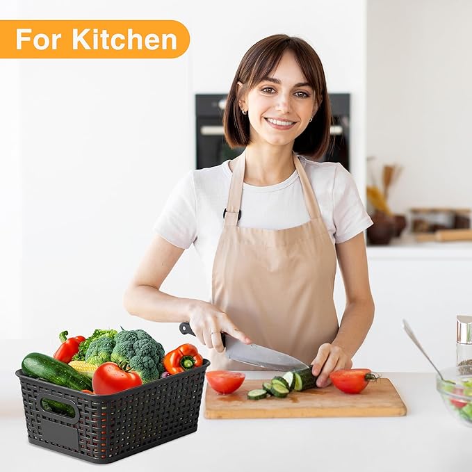 - MULTIPURPOSE STORAGE:These organizer baskets with lids are great for storage and practical, perfect for storing all kinds of household items, you can use it in closets, cabinets, shelves, classrooms, living rooms, bedrooms, bathrooms, offices and garages, etc. The plastic basket can be wiped and cleaned with a damp cloth, very convenient