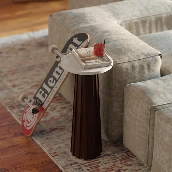 - Authentic White Marble Top: Crafted from 100% real white marble with rich natural veining—never faux or laminate. This solid wood piece functions as a drink table, end table, side table, or plant stand. Perfect for boho decor, bedside table use, home office styling, or as an entry way table. Ideal for small spaces, narrow corners, or spacious living areas. Also great as muebles para la sala or a mesa de noche para dormitorio.