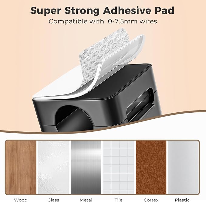 - SECURE ADHESIVE: Strong self-adhesive backing keeps cables firmly in place on desks, walls, or any flat surface while remaining removable.