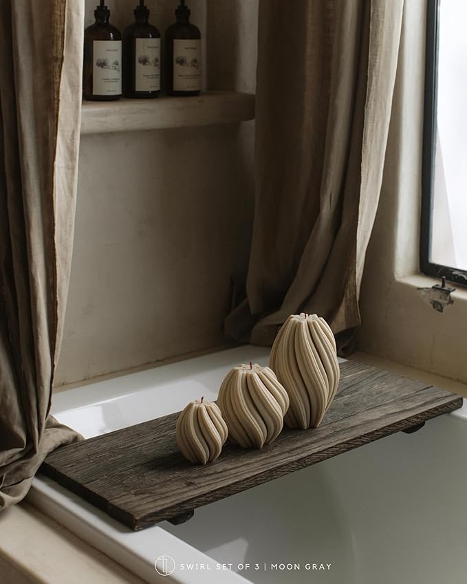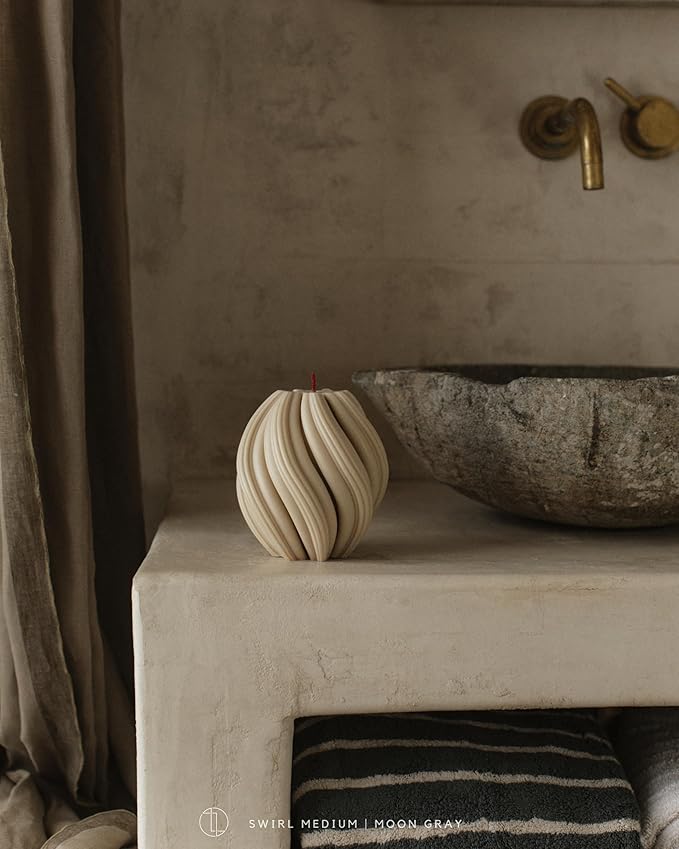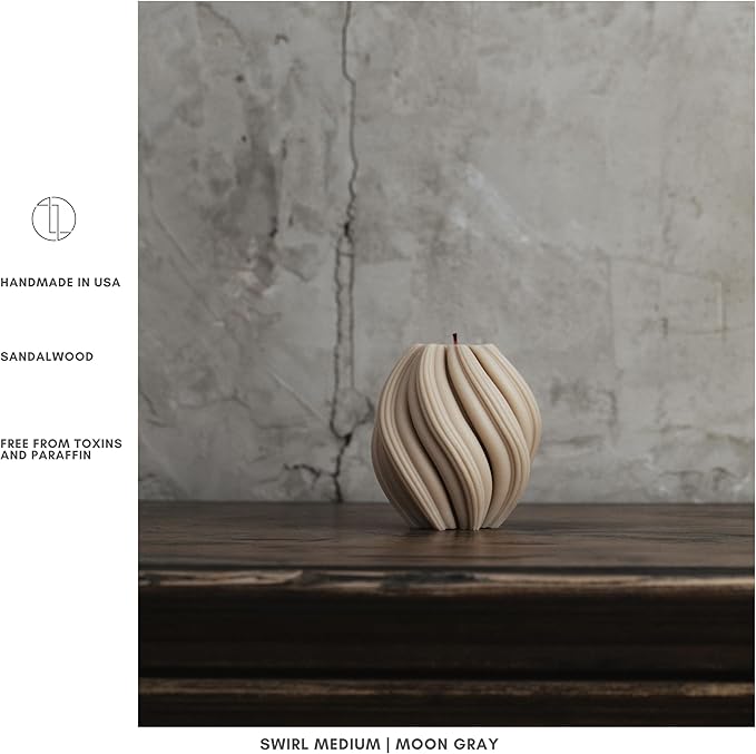 LAWA Swirl Candle - Large Beautiful Handmade Pillar Scented Soy Wax Twirl Elegant Bubble Aesthetic Candle Housewarming Gift Home Room Shelf Decor Idea Spiral Moon Gray (Medium)