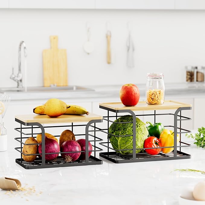 - Wide Applications:Can be placed on kitchen countertops, cabinet shelves, and pantry organizers for storing potatoes, onions, snacks, and more—serving as both kitchen organization and kitchen decor.Also suitable for under the sink in the kitchen and bathroom, laundry room organization and storage, etc