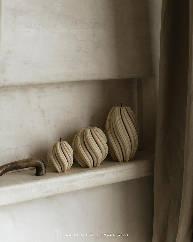 LAWA Swirl Candle - Large Beautiful Handmade Pillar Scented Soy Wax Twirl Elegant Bubble Aesthetic Candle Housewarming Gift Home Room Shelf Decor Idea Spiral Moon Gray (Large)