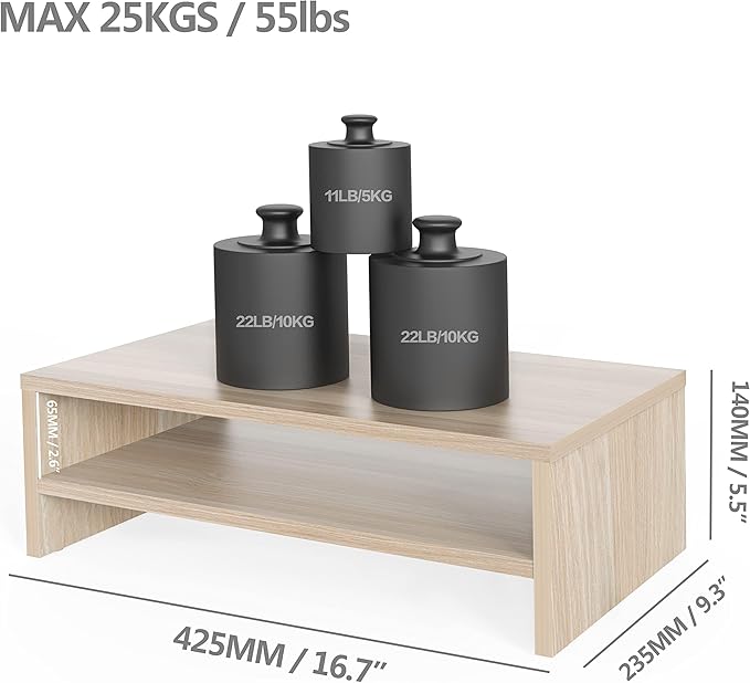 - 【2 Tiers for Desk Organization】Extra storage space while improving the height of your computer display. They are spacious enough to hold some of your larger sized things such as books, tablets. The storage of small stuffs is not even a problem.