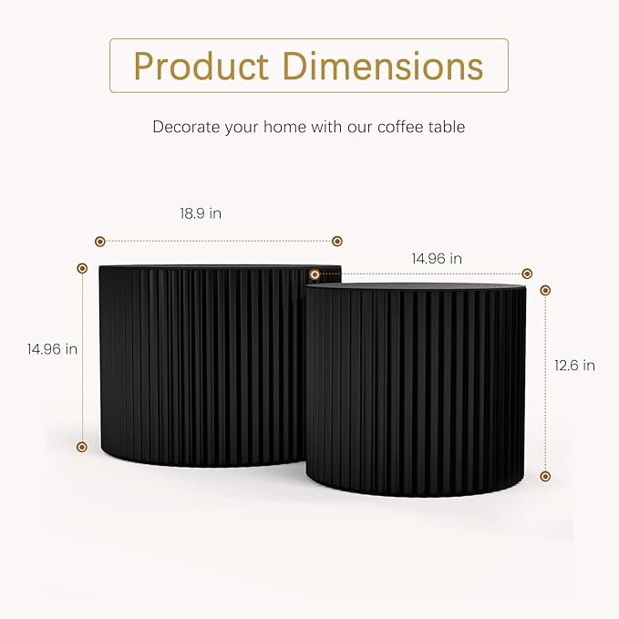 - [High Quality MDF Material] This drum coffee tables adopt MDF material, waterproof and wear-resistant, Multi-step finish process achieves both good looks and superior durability. Foot pads at the bottom can be non-slip to prevent scratches on the floor. You can also use them Individually in different rooms as side tables or accent tables.