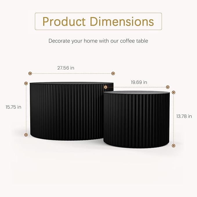 - [High Quality MDF Material] This drum coffee tables adopt MDF material, waterproof and wear-resistant, Multi-step finish process achieves both good looks and superior durability. Foot pads at the bottom can be non-slip to prevent scratches on the floor. You can also use them Individually in different rooms as side tables or accent tables.