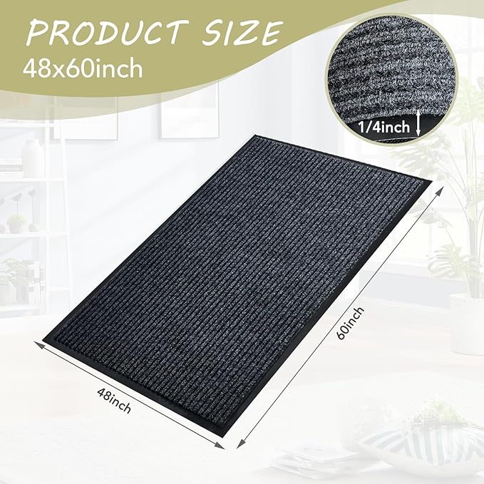 Front Door Mat,4'x5'Indoor Outdoor Door Mat,Heavy Duty Durable Welcome,Commercial Floor Mats Inside Outside Entrance, Waterproof All-Season, All-Weather Non Slip Backing Doormat for Entryway,Black