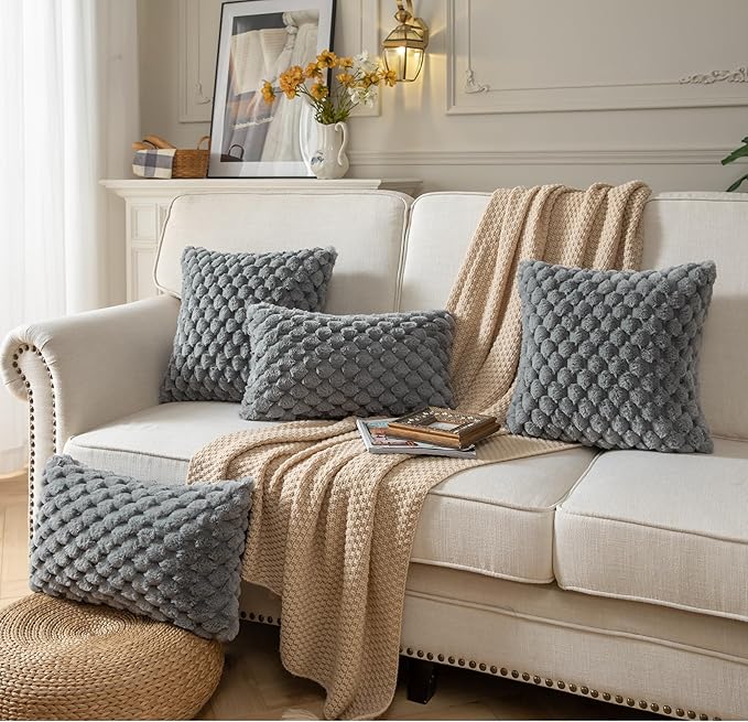 Pack of 2 Super Soft Throw Pillow Covers 20x20 Inch Faux Fur Plush Pillowcase Luxury Cozy Fluffy Decorative Cushion Cover for Sofa Couch Bed Livingroom Darkgrey