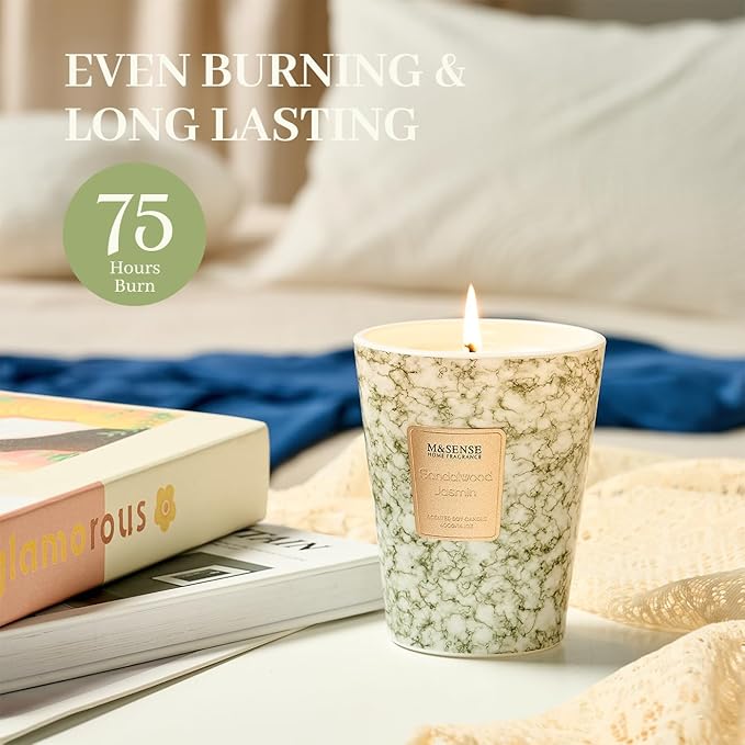 M&SENSE SandalWood Jasmine Scented Candles for Home, Lead-free Wick Highly Scented Jar Candles, 14.1 Oz 80 Hours Lasting Burning Candles Gifts for Women, Relaxing Aromatherapy Candle for Stress Relief