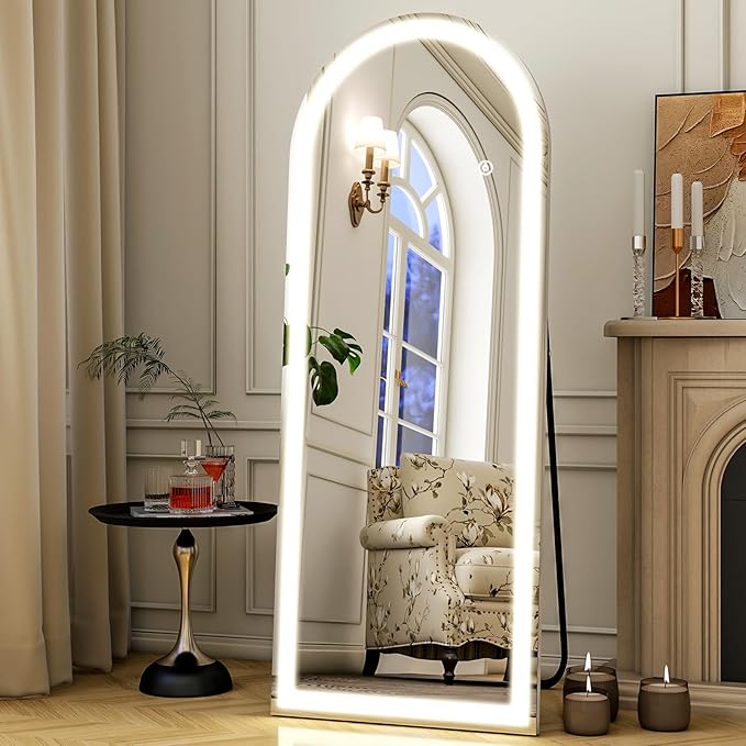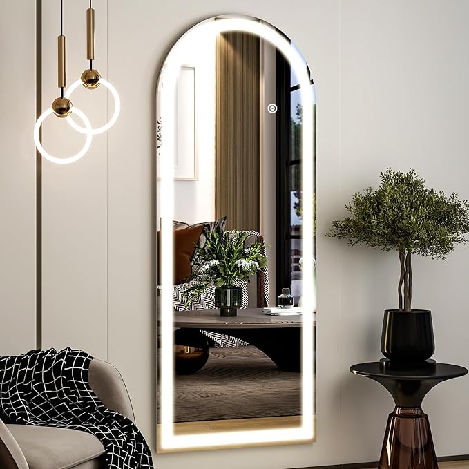 - Elegant Modern Design with Light Up Ambiance: Upgrade your home with this EASLY modern full length mirror featuring a sleek arched and rectangular inspired frame design. The built-in LED lights create a light up glow that enhances any bedroom, bathroom, living room, or vanity area. Whether placed on the floor, wall mounted, or as a standing décor piece, this large and stylish mirror complements tall, long, and big size interiors, adding a luxurious home atmosphere