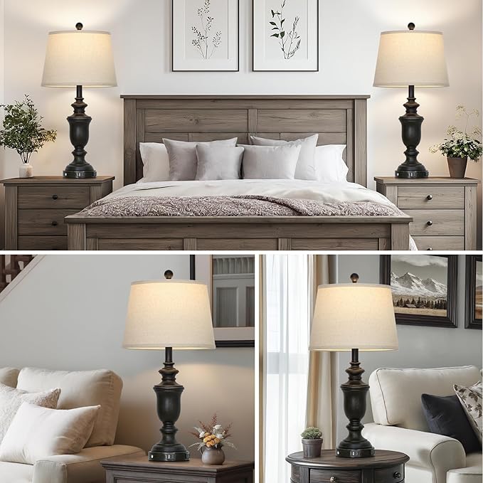 - 3-Way Dimmable Touch Lamps: Our retro bedroom lamps set of 2 has a built-in sensitive sensors,You just need to tap touch control switch of the base to adjust 3 level brightness and turn it on/off. Low-level is a perfect nightlight for sleeping or nursing, mid-level is ideal for daily use, and high-level is excellent for reading, studying and working.It can make you get rid of the trouble of fumbling the switch in the dark, perfect for the nightstand bedside and side table.