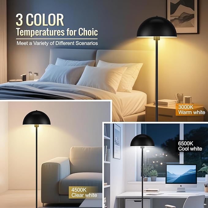 - 💖Industrial Floor Lamp for Bedroom - This stand up lamp with an elegant dome curve, illuminating the soft reflection lighting via the inner lampshade. So that it will offer the elegant and accent lighting for your reading, playing, relaxing. The unique design can definitely add a sense of fashion and art to your home. Its warm lighting and elegant design can match various styles of home furnishings, such as modern mid-century, contemporary, traditional, farmhouse