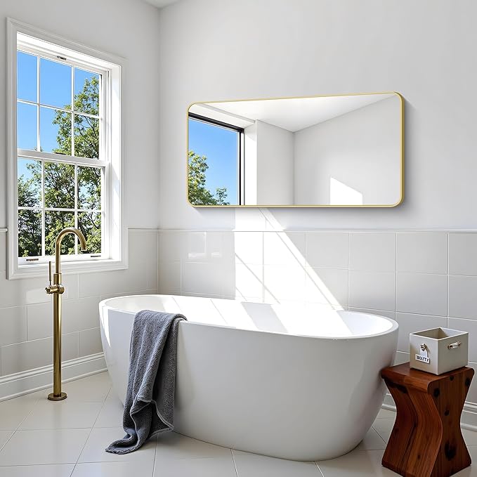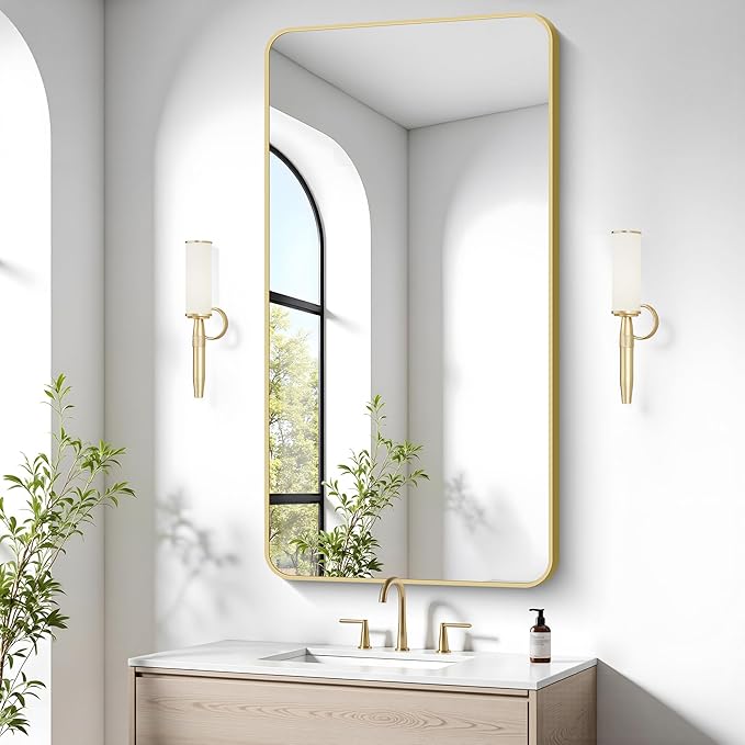 Gold Bathroom Mirror,24x48 inch Wall Mirror for Bathroom Wall Mounted,Round Rectangle Mirror for Bathroom Over Sink,Modern Frame for Home Decor Living Room,Bedroom Entryway,Horizontal/Vertical