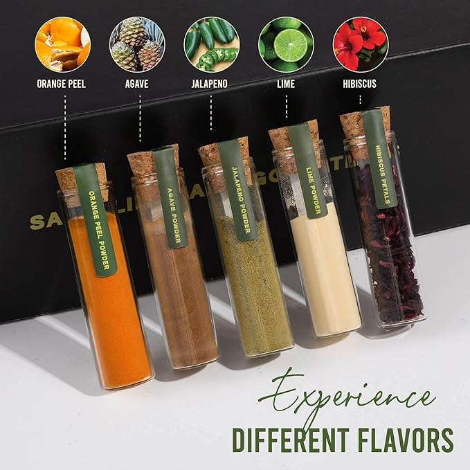 - INFUSE & RIM LIKE A PRO – 5 BOTANICALS + LIME MARGARITA SALT - Craft the perfect margarita mix kit gift set with 6 flavorful botanicals: jalapeño, lime powder, agave, orange peel, hibiscus petals & dried lime—plus premium lime-infused margarita salt for the perfect rim.