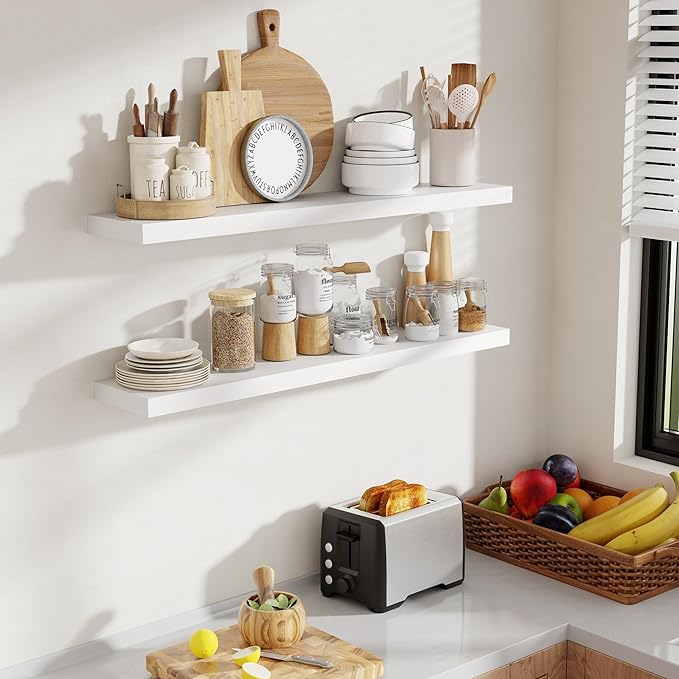 - [EASY INSTALLATION WITH FULL INSTRUCTIONS]: Our floating shelves come with all mounting hardware and an easy-to-follow guide, allowing for quick setup in less than 10 minutes. With step-by-step instructions, you can enjoy these beautiful shelves with minimal effort, adding an instant upgrade to your space.