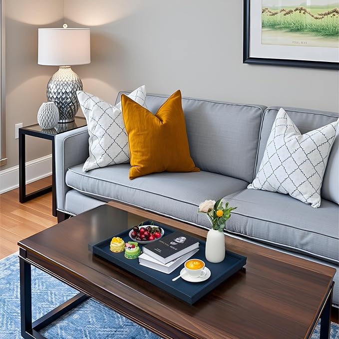 - Space-Saving Organizer for Any Room:Maximize utility without sacrificing style! From holding remotes and magazines in the living room to serving as a vanity tray in the bedroom, this ottoman tray adapts to your needs. Its slim profile and lightweight build make it easy to reposition as a bedside caddy, office supply holder, or decorative centerpiece—always blending functionality with understated elegance.