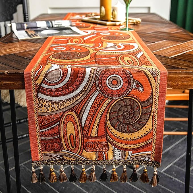 13×72 Inch Table Runner, Retro-Luxury Tassels Series for Kitchen Dining Table Holiday Decoration (Spiral Arts)