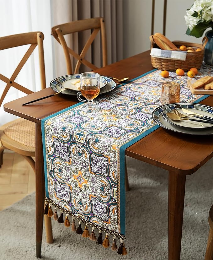 13×72 Inch Table Runner, Retro-Luxury Tassels Series for Kitchen Dining Table Holiday Decoration (Saliera)
