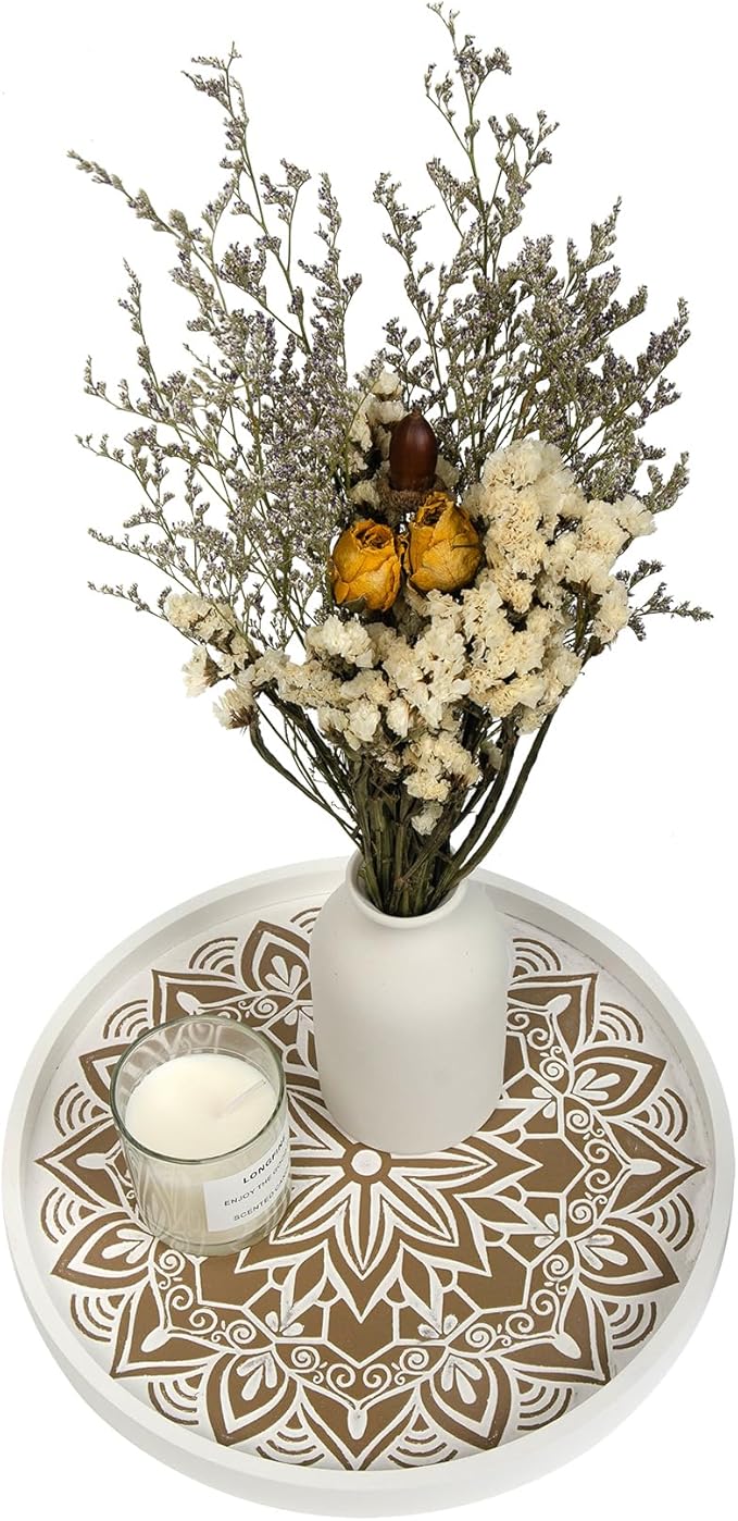 - DECORATIVE ACCENT: Beautiful boho-style tray that works as both a functional serving piece and an attractive display platform for candles, plants, or artwork